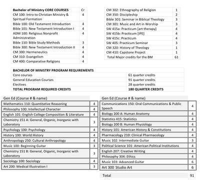 This degree consists of a minimum of 180 quarter units and prepares students to do further study in Christian ministry to either serve as a chaplain, minister, or missionary (at least one missions trip is required for graduation).